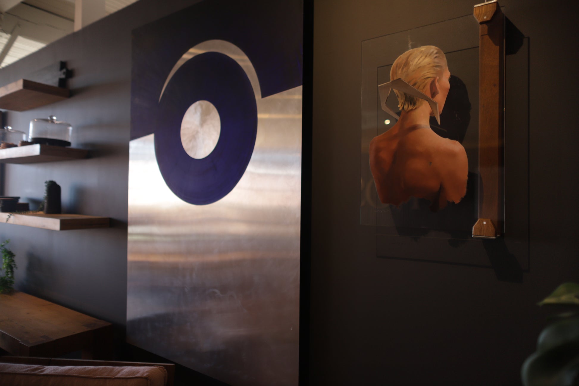Oil on aluminum, 72x48", with custom reclaimed white oak mount by Ross Alan Lumber.